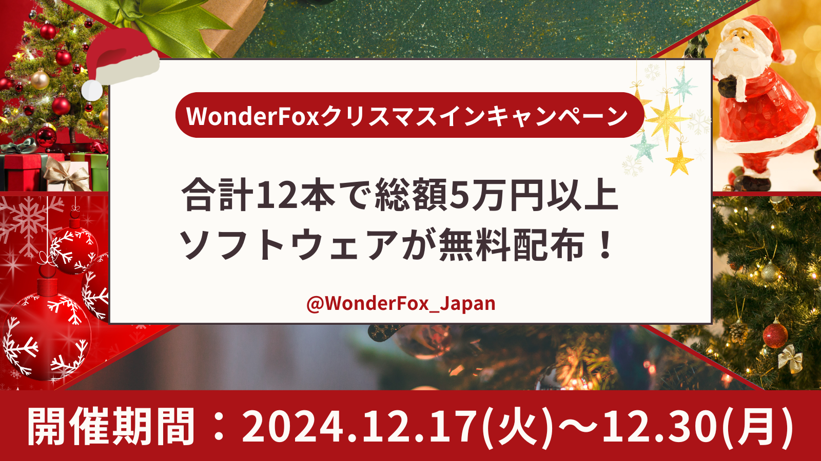 WonderFox2024年クリスマス無料配布キャンペーンが実施中。12本で合計5万円以上のソフトウエアが無料配布中!